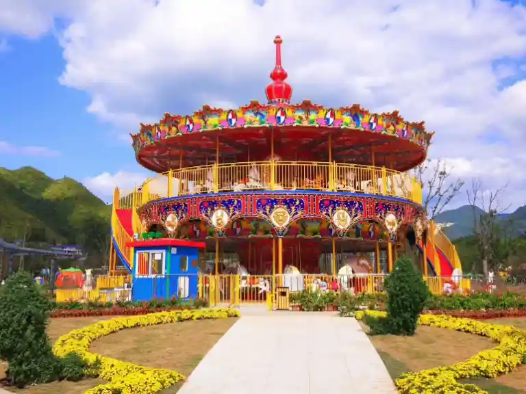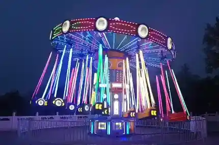 Riders soar through the air in suspended chairs, enjoying a perfect blend of excitement, safety, and visual appeal—an iconic centerpiece for any park.